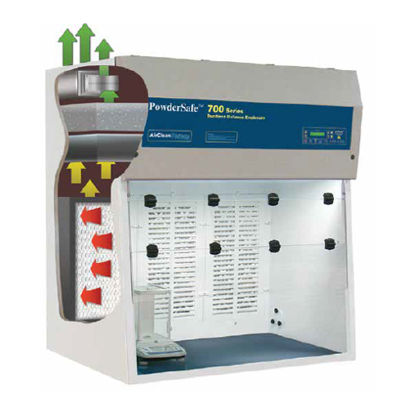 Ductless fume hoods are utilized for tasks that require containment of hazardous powders and moderate chemical fumes.